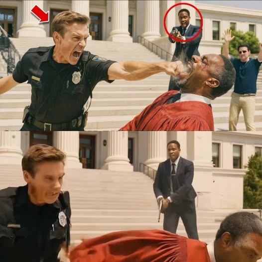 Elijah didn’t move. His jaw throbbed, blood already crusting near the corner of his lip, but he stood still, breathing through his nose, hands at his sides. His left hand trembled. One of the agents holstered his weapon, stepped forward. “Judge Stone, are you—” “I’m fine,” Elijah said, voice low. “What the hell were they doing here?” Elijah’s eyes scanned the steps, the blood, the video cameras now aimed directly at him. Hayes wasn’t just some rogue cop. That punch carried the weight of a system too long left unchallenged. A system that now, publicly, had turned on one of its own.