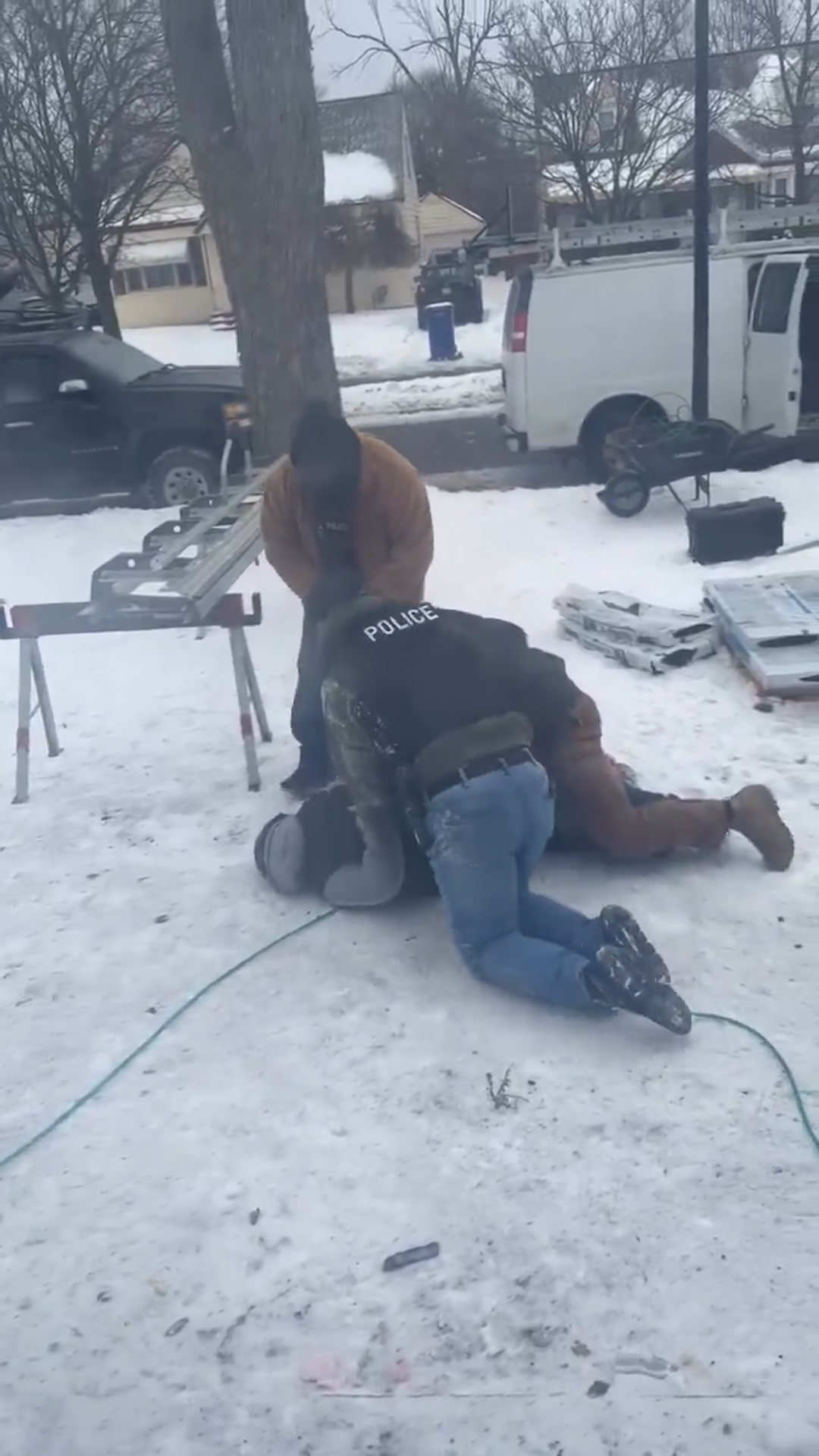 The video emphasizes the step-by-step nature of the operation: first the workers, then the onlooker, and finally the property owner. Viewers have referred to it as a “domino effect,” with each person in the vicinity ending up detained as agents pursued various lines of inquiry.