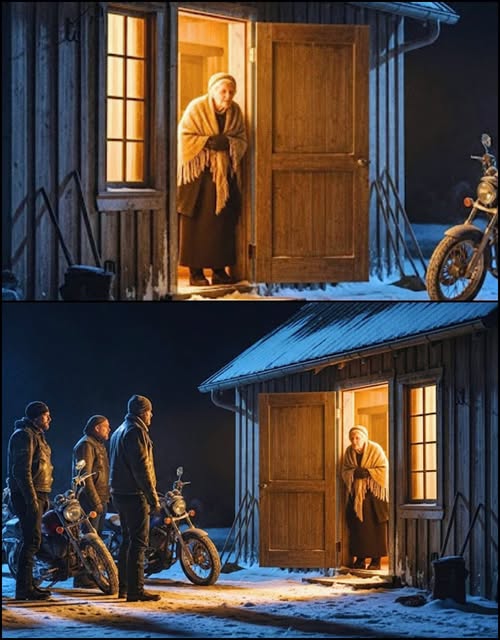 An elderly widow, childless and burdened by debt, frail and weary from years of silence, stood at her window clutching a worn shawl, listening to the storm howl outside. It had been fifteen years since her husband passed, leaving her to shoulder a house too big, a silence too heavy, and a life that seemed to shrink with each passing season. And yet on this night, the sound that reached her was not the cry of the wind, but the desperate roar of motorcycle engines struggling against the cold.