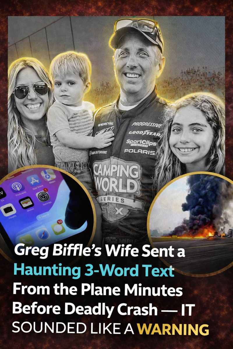 In the hours before the crash, Cristina shared words about resilience and late-blooming success, unaware they would soon be read as a heartbreaking farewell. A smiling photo with Greg, once just another happy post, has become a frozen moment before everything changed. Mid-flight, her final text to her mother — “We’re in trouble” — landed like an alarm that could never be answered.On the ground, witnesses watched the jet fly far too low, then vanish into an eruption of fire and smoke. Security footage confirmed what they saw: a desperate turn back toward the airport ending in a violent impact. As experts quietly analyze engine data and flight paths, the racing community speaks louder, remembering Greg as a champion, a rescuer after Hurricane Helene, and a devoted father. Behind every tribute is the same stunned question: how can a life so full disappear so fast?