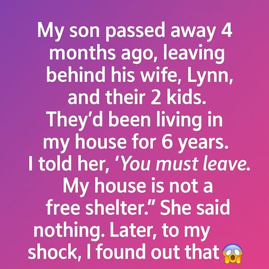 For six years, my house had been alive with laughter, footsteps, and the comforting chaos of life shared. My son and his partner, Lynn, along with her two children, filled every corner with warmth. Our home wasn’t just a structure—it was a heartbeat. But when my son passed away, that heartbeat faltered. The silence that followed was suffocating. Every sound, every photograph, every object in the house was a reminder of him. Grief has a strange way of turning familiarity into pain.