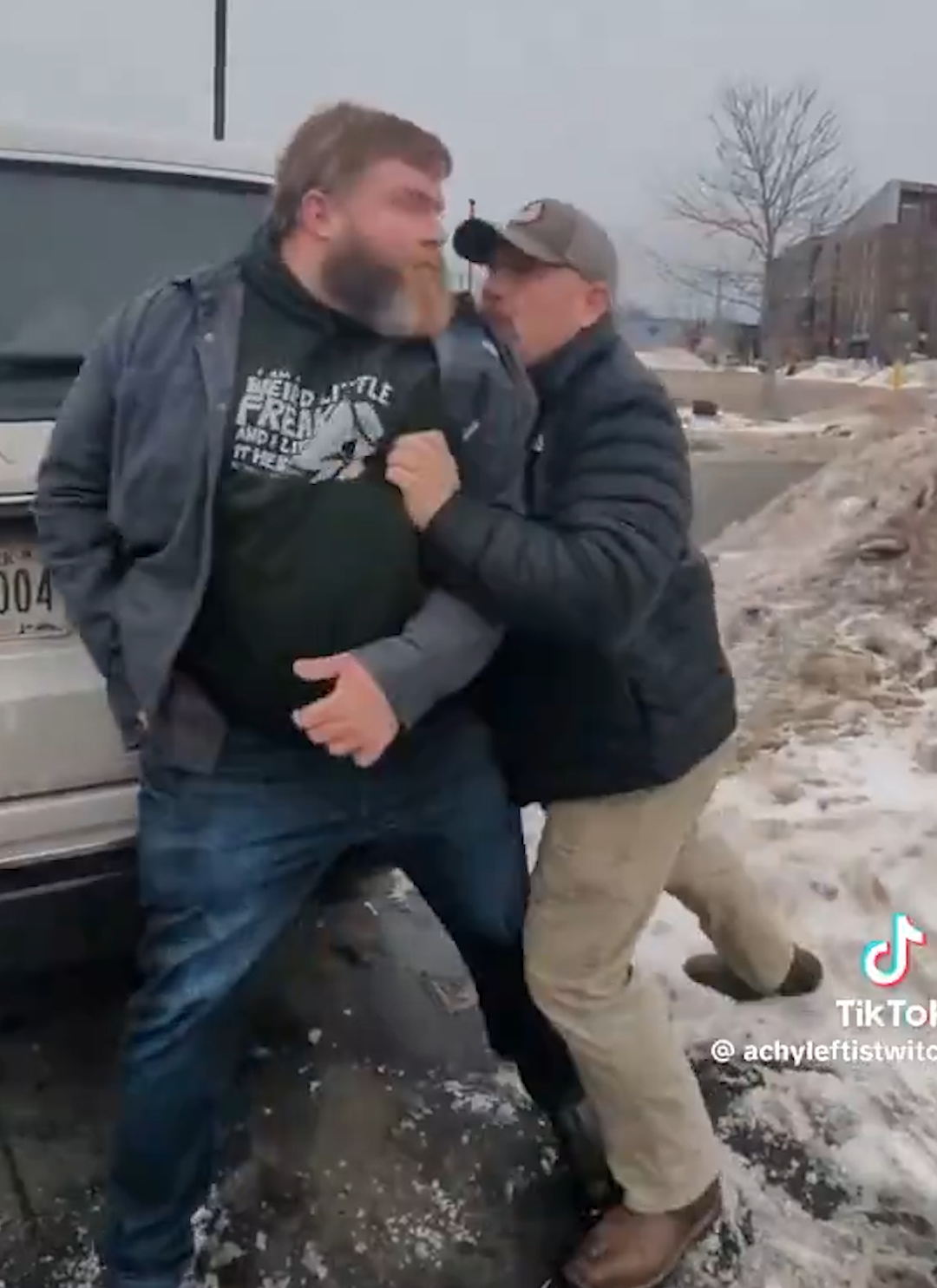 The video does not show what led to the initial confrontation or whether the agent was on duty at the time. No physical injuries are visible in the clip.